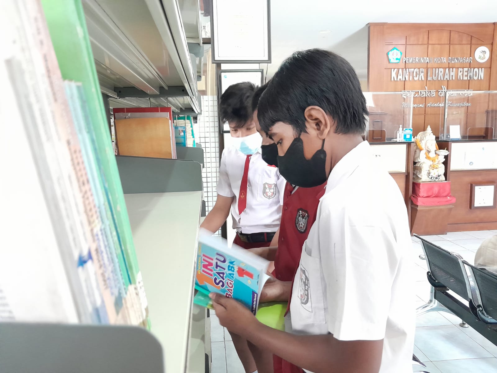 Senin (25/04/2022) Kepala Kelurahan Renon yang didampingi oleh Ibu Ketua TP PKK Kelurahan Renon menerima kunjungan siswa bersama perwakilan Guru dari SD Negeri 3 Renon. Dalam kunjungan tersebut Kepala Kelurahan Renon memperkenalkan perpustakaan yang ada di Kantor Kelurahan sebagai sarana yang dapat digunakan dalam proses pembelajaran.